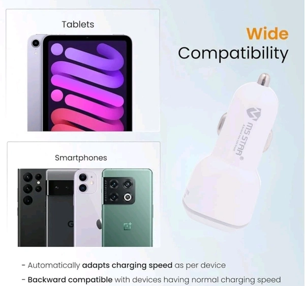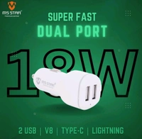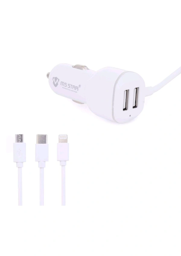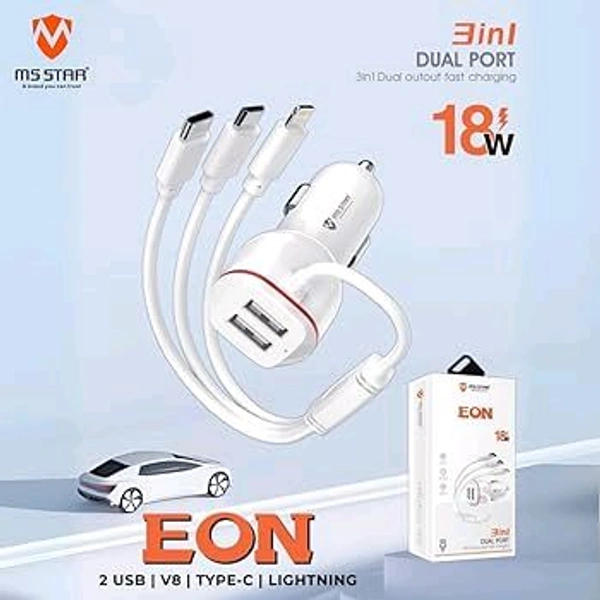 MS STAR 18W Eon Car Charger USB C Fast Charging | 3 in 1 Dual Port for iPhone 16 Pro Max 15 14 13 12 Samsung Galaxy S25 Android